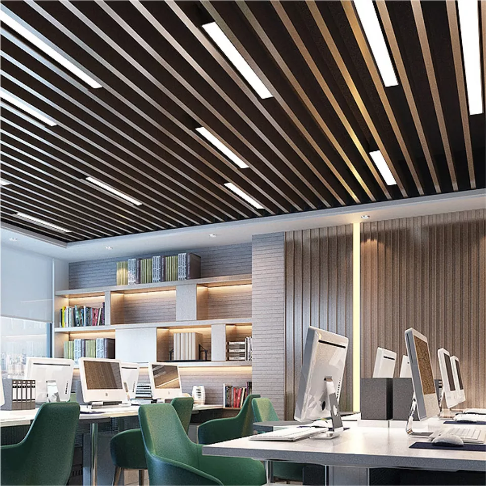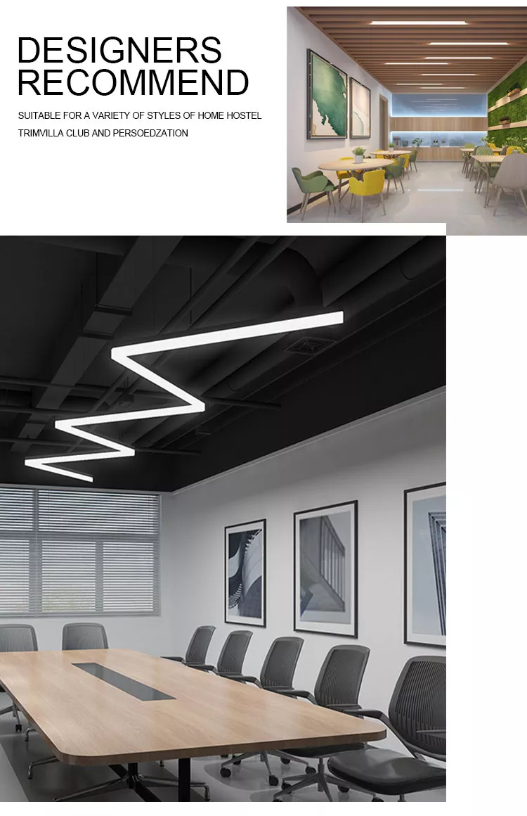 Office Aluminum Pendant Ceiling Line Lights Modern GYM Simple Rectangular LED Linear Light 5-sided
